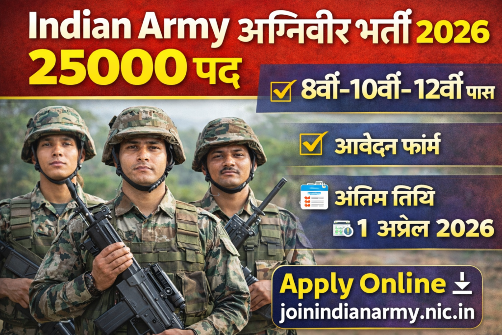 Indian Army Agniveer Recruitment 2026: 25,000 पदों पर नोटिफिकेशन जारी, 8वीं–10वीं–12वीं पास करें आवेदन