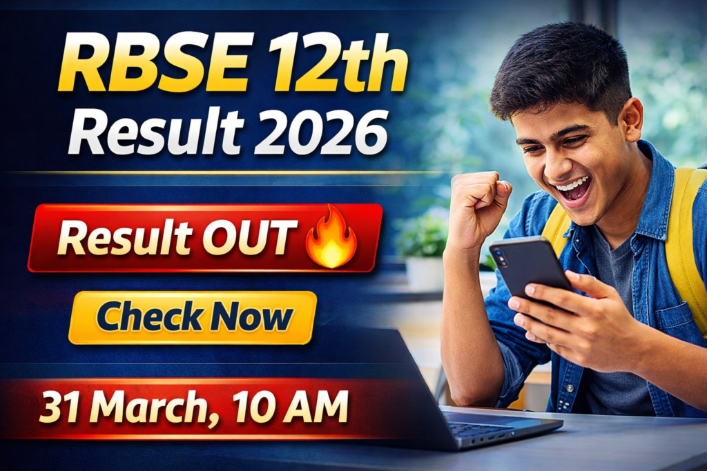 RBSE 12th Class Result 2026: राजस्थान माध्यमिक शिक्षा बोर्ड (RBSE), अजमेर द्वारा 12वीं कक्षा का रिजल्ट जारी करने की तैयारी पूरी हो चुकी है। इस साल बोर्ड परीक्षा में शामिल हुए लाखों छात्रों का इंतजार अब खत्म होने वाला है। 👉 ताजा अपडेट के अनुसार, RBSE 12वीं का रिजल्ट 31 मार्च 2026 को सुबह 10 बजे जारी […]
